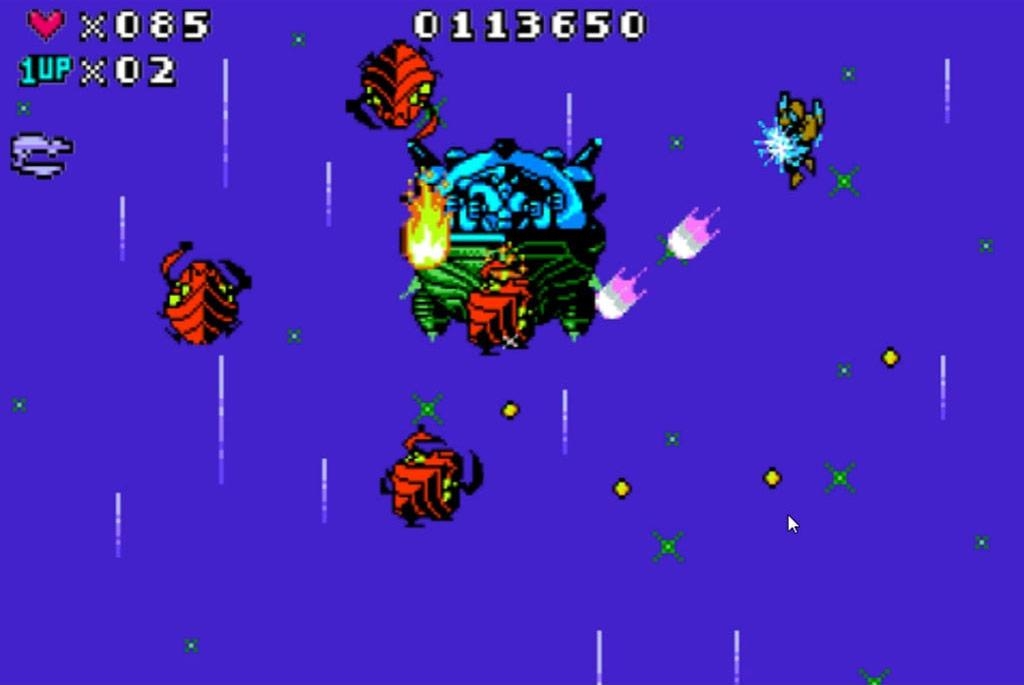 - Three levels of intense sci-fi, sidescrolling action!