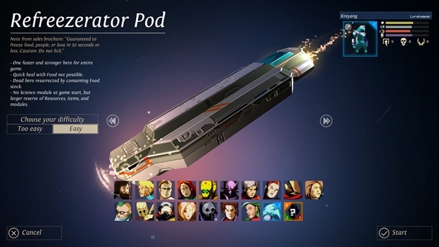 - No Science module at game start, but larger reserve of Resources, items, and modules.