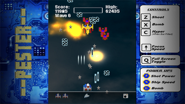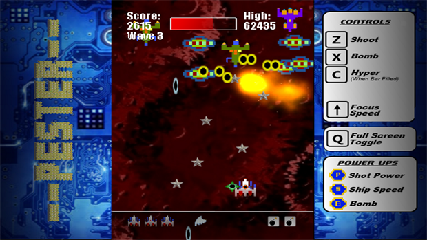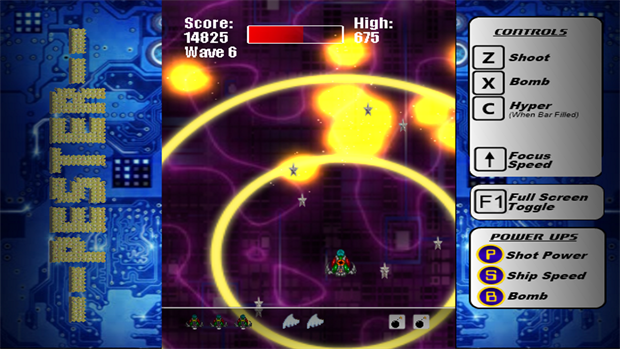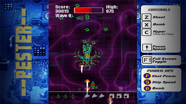 A remake of one of my early C64 games, Pester is a very fast paced and busy vertical shooter.