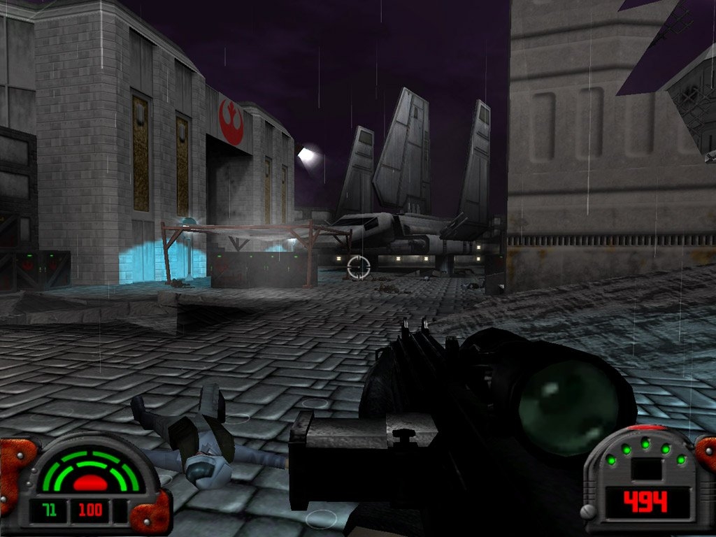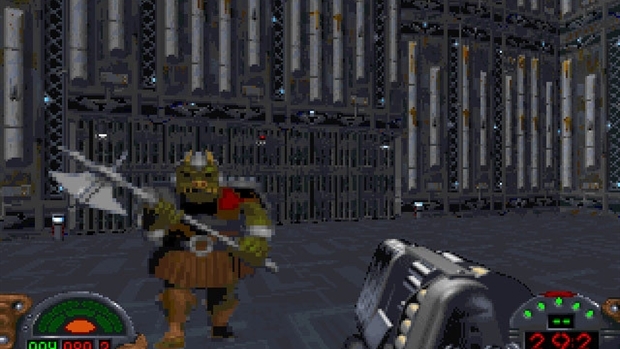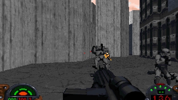 The Empire stretches its evil clutches across the galaxy, consuming planets with devastating results. Through many struggles, the Rebel Alliance has learned of a new Imperial battle station, the Death Star, with enough power to destroy an entire planet. The evil Empire is secretly building a massive army to complete their arsenal of domination and render their reign of terror unstoppable. Kyle Katarn, a formal Imperial Stormtrooper must join the Rebel Alliance's covert operations division, and re-take the Empire from the inside, one battle at a time. Unlike many other Doom-based games, Star Wars: Dark Forces attempted a realistic approach: the missions followed a specific storyline, sometimes cut up by scenes to progress the narrative. Each mission had its own briefing and objective. The levels were designed to represent actual bases, mines, facilities, and other known places from the Star Wars universe, like Star Destroyer interiors, Jabba's ship, Coruscant, etc.